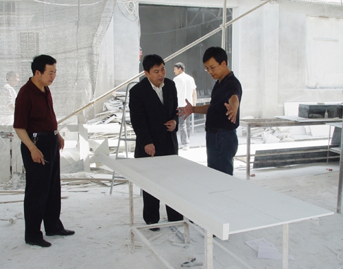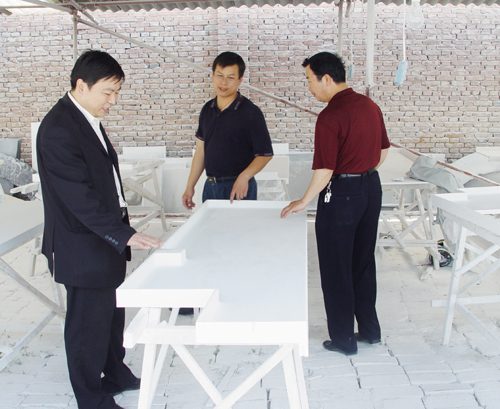 2008年5月16日下午,协会常务副会长、秘书长王平安到金丽人造石加工厂调研,协会开发部李河林部长、宣传部杨益铭陪同,金丽人造石加工厂经理陈明宏参加了此次调研。 金丽人造石加工厂是专业从事实体面材(人造石)设计、加工以及销售一体的现代化工厂, 在陕西同行中享有较好的声誉。代理加工的品牌有德国思迪家色丽石、杜邦蒙特利、广东华纳、金石、格兰迪、奥维石等多个品牌,为宾馆饭店和消费者的装饰美化提供了高档建材和高水平的服务。协会开发部李河林部长指出,该产品和技术,需要不断提高和拓展市场。王平安秘书长要求,企业要提高管理水平,不断创新拓展服务领域,把企业做大做强。陈明宏经理表示要不断提高产品质量,诚信经营,向西北地区全面推广产品和技术,希望与协会加强合作,并给与支持和帮助。王秘书长表示协会将大力支持,给与必要的促进。