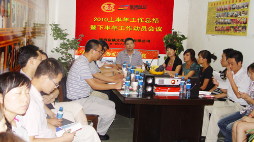2010年8月13日,陕西省金诚文化发展有限公司召开2010年上半年工作总结暨下半年工作动员会。陕西省企业信用协会常务副会长、秘书长王平安,公司副总经理张苗坤出席会议,金诚快印副店长、总工董建华,协会各部门代表、今传媒杂志代表、公司其它部门主任及全体工作人员参加会议。 会议首先听取了各部门2010年半年工作总结。张苗坤副总经理代表金诚快印做上半年工作总结报告。王平安秘书长在会上讲话指出,金诚快印上半年在人员调整、纸张涨价、业务滑坡的情况下,实现淡季不淡、经营业绩持续上涨的良好态势,成绩来之不易,同时公司号召全体员工“重拾创业激情,争创快印辉煌”。 协会代表、今传媒杂志社代表分别作了交流发言,大家共同探讨市场经济条件下,商业运营模式的措施和方法,强调“诚信无价、服务有心,优质服务”是赢得未来的商业法宝。大会圆满的完成了各项议程,胜利闭幕。