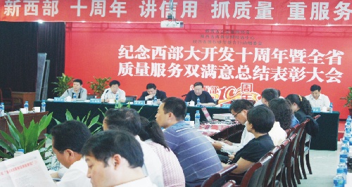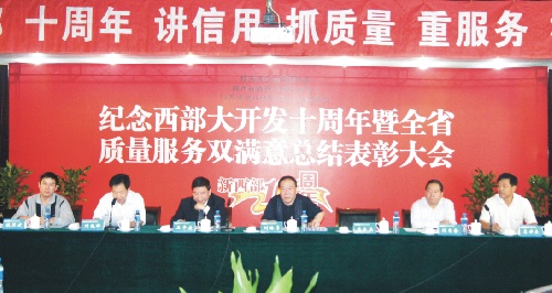2010年8月27日上午,“新西部十周年”座谈会暨全省质量服务双满意总结表彰大会在西安隆重召开,省直有关部门负责同志、部分国企、民企等企事业单位,省内主要新闻单位约200余人参加会议。会议交流总结了西部大开发十周年来我省工业经济及社会各领域取得的辉煌成就并发布了2009-2010年度陕西省重点行业产品质量及服务调研报告,报告指出,近年来在全省各级各部门的共同努力下,在社会各界的积极配合下,我省产品质量及服务状况有了较大的改善,总体状况是一般工业品产品质量与服务普遍转好,但食品及与食品相关行业质量隐患较大,但在售后服务方面基本满意。同时,授予28户优秀企业 “全省质量服务双满意单位”荣誉称号。 据悉,此次会议是为纪念西部大开发十周年,总结十年来我省经济社会尤其是工业经济、企业发展、国企改制等方面取得的巨大成就,展望未来十年的发展蓝图,同时配合有关部门开展行业整顿,对我省重点行业2009-2010年度市场状况进行调研总结,看现状、抓质量、寻问题、找差距、树典型、塑品牌,有针对性的解决企业在信用管理中存在的实际问题,提高企业的管理水平和经济效益。 陕西国正建设监理有限责任公司、陕西渭南燕兴实业有限公司、陕西建工集团设备安装工程有限公司等代表获奖企业在会议上作交流发言。省直有关部门就产品质量安全、市场经济秩序等提出要求和改进措施。 省发改委、省国资委、省商务厅、省工商局、省质检局、省地税局、省企业信用协会等相关部门领导出席会议。