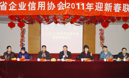 2011年1月26日下午,陕西省企业信用协会联合陕西金诚文化发展有限公司、今传媒杂志社在陕西省委党校召开2010年度总结表彰暨新春联谊会。陕西省企业信用协会常务副会长、秘书长王平安,协会副秘书长刘振超,陕西金诚文化发展有限公司副总经理张苗坤,协会常务理事、会员部主任雷小毅,协会常务理事、信管部主任姜超,协会常务理事、今传媒杂志社社长助理杨益铭,协会常务理事、今传媒杂志社总编助理王文娟以及协会、金诚文化、今传媒杂志社全体员工参加会议。会议由陕西省企业信用协会提升办主任霍彦俊主持。 会议首先听取了由协会副秘书长刘振超、陕西金诚文化发展有限公司副总经理张苗坤、金诚各部门负责人、今传媒杂志社社长助理杨益铭等所作的单位及部门工作总结。相关总结围绕单位及部门2010年工作实际,从多方面、多角度反映了一年来取得的成绩和不足,对2011年工作进行了详尽的计划安排。 协会常务副会长、秘书长王平安在会上做了重要讲话,王平安秘书长指出,2010年在全体员工的共同努力下,协会、金诚和今传媒都取得了令人骄傲的成绩,协会作为主办协办单位,对金诚、今传媒取得的成绩表示祝贺。王平安秘书长强调,2010年对于我们来说是具有决定意义、实现根本转变、迈出实质步伐、取得重大突破的一年,经营更上规模,业务项目、服务内涵、服务深度和广度不断延伸,在细节化、人性化服务上更下功夫,大家齐心协力,共同努力,把我们的产业做大做强,提升了产业的市场化程度、认知度和美誉度。2011年是世界经济复苏的一年,也是中国企业面临挑战最大、机遇最多、充满希望、充满竞争的一年。希望全体员工能够众志成城、无比团结,以昂扬的斗志,坚定的信心,无穷的智慧,决战的精神去迎接2011,共同谱写我们创业史上更加绚丽的篇章。 会议还对2010年先进集体、先进个人进行了表彰,会议号召全体员工向先进学习,共同推进各部门的工作不断取得新的跨越和发展。 在随后的新春联谊会上,来自协会、金诚快印、今传媒编辑部的同志们,以独唱、合唱、相声、朗诵等多种形式献上了一台精彩的联欢表演,并进行了现场抽奖活动,整场联谊会充满青春活力和节日喜庆的氛围,洋溢着和谐与欢乐。