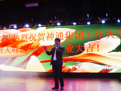 2011年5月30日,神通集团十年之旅暨天峰国际酒店隆重开业仪式在榆林神木县盛大举行,原省委书记安启元为该公司题词祝贺,原省委常委、组织部部长刘葵楚、省人大副主任刘遵义出席活动。省级有关部门负责同志及榆林市委市政府、神木县委县政府等有关部门负责同志出席活动。省企业信用协会负责同志刘林亭、王平安、刘根科、闫自全、李升良等应邀参加活动。 神通集团成立十年来,不断创新发展,不断开拓进取,实现产值3.5亿元,纳税1000多万元,为榆林经济的发展,为神木的社会建设,做出了积极的贡献。受到了党和政府及人民群众的表彰和好评。该公司投资1.5亿元建设的天峰国际酒店隆重开业,标志着该公司新发展和新业绩,将为我省的旅游发展增加新的活力。