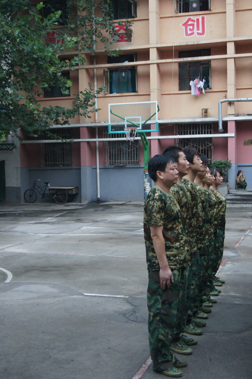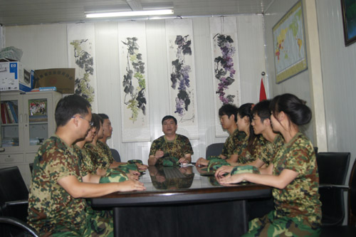 陕西省企业信用协会为了强化半军事化管理,提高员工的军事素质,员工服务能力,加强对员工的爱国主义教育,开展为期两周的军训活动。 2011年 8月20日,协会邀请了中国人民解放军某部官兵在协会开展了对单位员工的军事训练活动。 训练的科目:一是肢体训练。提高员工在对企业服务过程中的肢体动作、行走坐卧等方面的基本军事要领。落实“关心企业、重视企业、服务企业”的方针,树立员工品牌形象,强化日常工作中快速反应力,推进单位半军事化管理工作的实现。例如走步、跑步等方面培训。二是口语训练。训练员工在服务工作中的口语表达能力。如口令、简短汇报语言、文明礼貌用语。三是耐力培训。为提高员工在服务工作中耐力和定力。在阳光下,训练教官和协会员工的身上汗水湿透了衣服,员工们迈着整齐的步子、喊着整齐的口令,一遍一遍的走着,围观的人们不时地发出赞叹声。