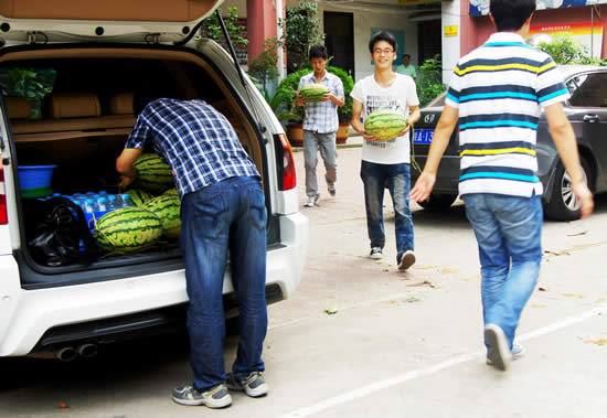 连日来,西安持续高温,但是各行各业的企业员工坚守岗位,工作热情不减。协会为了企业职工防暑降温,除了向企业发布高温警示信息,还积极筹措资金,为企业送去西瓜等降温品。2012年7月13日,协会赶到长安区瓜田亲自为会员企业采购上万斤新鲜西瓜,向西安驻地的部分企业职工发放,开展送西瓜、送“凉爽”进企业活动,受到了会员企业及职工的好评。其中,3513、龙记地产、中诚投资、省一建、博源环境、泉鑫实业等企业领导关心职工,并派车拉运西瓜,以实际行动把防暑降温、关心职工生活落到实处。陕西泉鑫实业董事长李西爱、办公室主任祁美华亲自赶到协会,当面向秘书长表示感谢,李董事长说:“协会能为企业着想,急企业所急,真是企业的好娘家”,表示一定会积极响应协会的号召,配合协会的工作,会员企业和协会心连心;当听说协会有两千多户会员企业时,祁主任动情的说:“这么好的协会,企业当然都自愿加入,情暖人心,人心所向啊”。短短数语,道出了企业的心声,也包含着协会浓浓的情意。