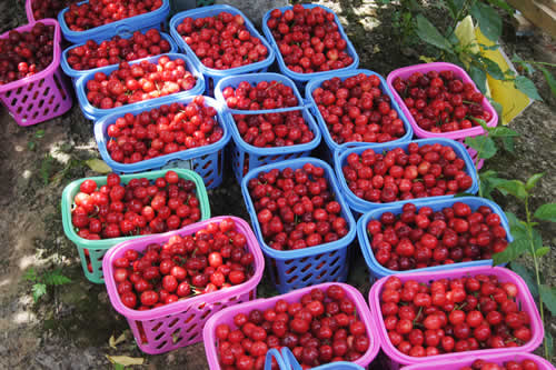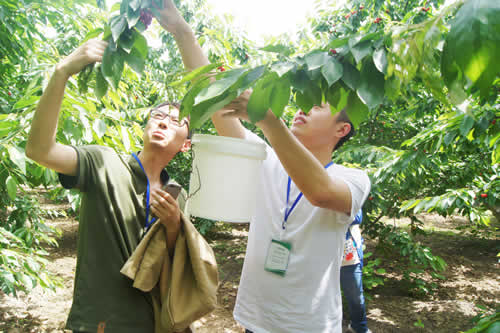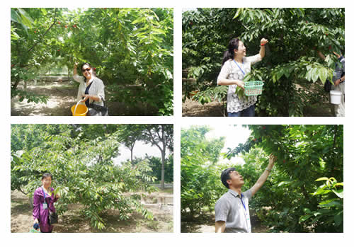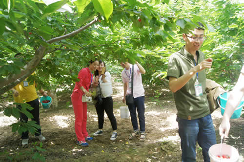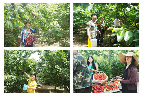 时下正是樱桃成熟的季节,大家到基地樱桃园里进行观光并参加采摘。樱桃园内空气清新,绿色无公害种植,是标准化的有机生态农业,园内满树都挂着红红的樱桃,像串串玛瑙似的,让人垂涎欲滴,大家怀着喜悦的心情提着篮子在园内尽情地采摘品尝,个大肉鲜,让人一饱口福,不时的还有人拍照留念,感受园林风光,尽享采摘乐趣。
