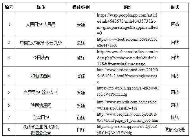 榜单:2019第一届信用强国大讲堂•宝鸡 (排名不分先后)