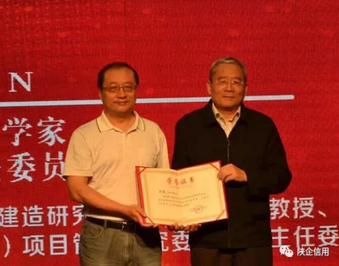 国家发改委正司长级研究员宋承敏代表陕西省企业信用协会为尤完专家颁发“首席经济学家副主任委员”荣誉证书