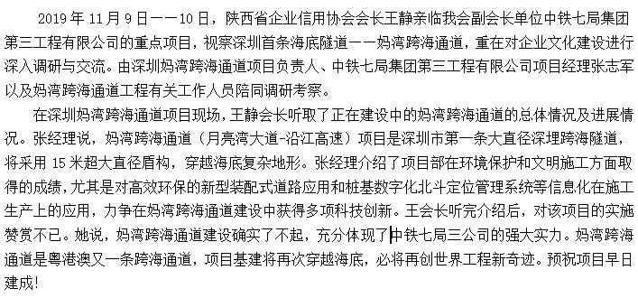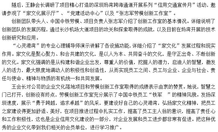 王静会长视察中铁七局三公司深圳妈湾跨海通道调研企业文化建设