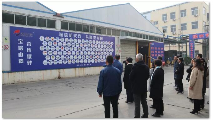 在宝塔山漆高管的陪同下,考察调研团一行参观了宝塔山漆,通过对技术中心、制漆厂等核心单元的涂料研发、制作过程观摩,以及企业文化展示墙的参观,详细了解了“宝塔山漆 用心做好漆”的企业理念以及“美化环境,造福社会”的绿色生产体系。