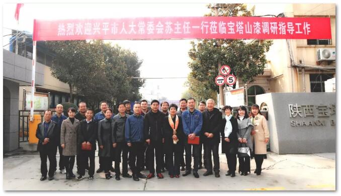 2019年,11月7日,兴平市人大常委会主任苏小妹、副主任袁团会、王战兵、袁彩梅来到陕西宝塔山油漆股份有限公司进行考察调研活动。委室主任何瑞宏,张录选,刘卫明,李立斌,安信会,赵建梅,杨正平,井阳,财工委干部郭亚娟一同参加了调研。