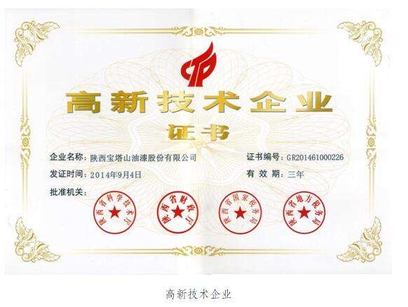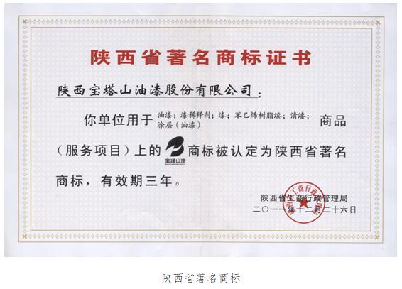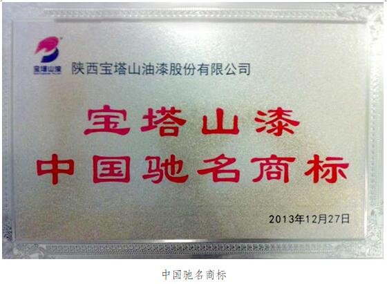陕西宝塔山油漆股份有限公司始建于1958年,是一家致力于油漆、涂料、树脂等高新技术产品的研发、生产与销售为主的精细化工企业。公司先后成立了陕西宝塔山工程科技有限公司、陕西宝塔山新材料有限公司、陕西英菲盛贸易有限公司、陕西宝塔山油漆股份有限公司西安分公司、武汉宝塔漆新材料有限公司、陕西宝塔山创新科技有限公司、广东宝塔山新材料有限公司等子、分公司。 公司历经60多年的发展,已成为西部地区最大的涂料品牌。现有醇酸调合漆、醇酸磁漆、钢结构防锈漆、工业漆、水性漆、重防腐漆、建筑涂料、艺术涂料等几百个品种、上千个花色。年产量7万多吨,年销售收入6亿多元。2017年公司股票成功挂牌“新三板”,进入全国资本市场(证券简称:宝塔山漆,代码871887)。公司以“创造涂料精品 铸造百年企业”为企业愿景,以“务实 创新 和谐 高效”为企业精神。现已通过了ISO9001、ISO14001和OHSAS18001管理体系认证、3C强制性产品认证、环境标志和建筑涂料产品认证等。在全国建立了300多个营销网点、100多家专卖店。 公司产品被“神六”飞船、酒泉卫星发射中心、青藏铁路、中原油田、大力天骏、中国东方电气集团、秦岭终南山隧道、鄂尔多斯机场等重点工程和工业项目所采用。同时在石油化工、电力、储罐、混凝土保护、车辆改装、地下车库、工程内外墙、家装等众多领域提供丰富的产品和专业的配套施工方案。 公司技术力量雄厚,公司现有专业工程技术人员68名,其中正高级工程师1名,高级工程师3名,博士研究生1名,硕士研究生7名。迄今共承担省、市科技计划项目9项,主持(参与)起草涂料行业国家或行业标准10项,获得省、市科技进步奖十余项,申请国家发明专利22项。先后与西北工业大学建立了涂料研发实验室,与华东理工大学建立校企合作实习实践基地,与西安交通大学、西北大学、陕西师范大学、陕西国防工业学院等院校签订了校企合作项目。企业技术中心为陕西省涂料行业唯一的省级企业技术中心,是集技术研究、实用技术开发、国家行业专业人才培养、技能鉴定为一体的产、学、研服务机构。 宝塔山漆系列产品被中国涂料工业协会授予 “中国绿色环保建材产品”、“全国用户满意产品”、第六批涂料、颜料行业“AAA级”最高企业信用等级单位。宝塔山漆工业涂料连续十届被评为“中国十大工业涂料品牌”、宝塔山漆建筑涂料连续七届被评为“中国十大外墙涂料品牌”、“中国十大内墙涂料品牌”,宝塔山漆艺术涂料被评为“中国十大艺术涂料品牌”。2015年宝塔山漆在中国涂料工业百年颁奖盛会上,一举揽获“中国涂料工业百年影响力企业(民族)”、“中国涂料工业百年百强企业”等五项殊荣、被中华全国总工会评为模范职工之家。2016年被中华全国总工会、国家安全生产监督管理总局评为全国“安康杯”竞赛优胜单位、被陕西省中小企业促进局评为陕西省民营经济转型升级示范企业、并荣获中国十大艺术涂料品牌、“十二五”中国石油和化工优秀民营企业称号。 公司在取得辉煌成就的同时,一向秉承服务社会、回报社会的理念,遵守国家法律法规,以创造涂料精品为社会公共责任,始终把教育事业、慈善事业作为支持的重点。致力于巩固西部地区龙头涂料企业的地位,为实现“创造涂料精品 铸造百年企业”的愿景而努力奋进! 企业荣誉